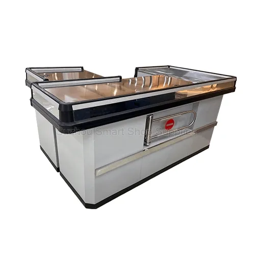| L-Shaped Cashier Counter Table with Aisle Gate |