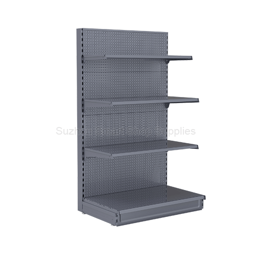 This European Style Perforated Wall Shelf is the ultimate multi-purpose display solution. Designed to sit flush against your store walls, it features heavy-duty punched back panels (pegboards) that allow you to mix standard shelving with hanging display hooks. Built to rigorous European standards, it provides exceptional load-bearing performance and a clean, premium aesthetic for pharmacies, supermarkets, and hardware stores.