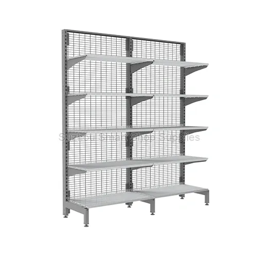 Maximize your store's perimeter space with this Heavy-Duty Australian Standard L-Post Wall Shelving. Designed with a standard 41mm pitch system, this single-sided unit features a robust L-shaped base post that ensures heavy-duty stability without the need for front-obstructing pillars. Paired with a breathable wire mesh back panel, it offers a clean, open display area perfect for hardware stores, pet shops, and large supermarkets requiring both high capacity and maximum product visibility.