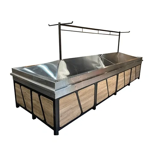 | Double-Sided Stainless Steel Produce Island with Hanging Rail |