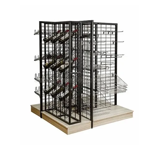 Capture customer attention from every angle with our Versatile 4-Way Wire Mesh Liquor Display Rack. This dynamic retail display fixture is the perfect center-aisle solution for high-traffic liquor stores, wine boutiques, and supermarkets. Featuring a 360-degree open design with four heavy-duty wire mesh faces, it offers unparalleled merchandising flexibility. The reinforced grid structure is specifically designed to support a variety of accessories, including mesh hooks for accessories, wire baskets for bulk sales, and specialized wire wine cradles for professional bottle presentation. Built with industrial-grade steel and a sleek matte finish, this 4-way rack is a high-performance promotional display stand that turns any floor space into a profit center.